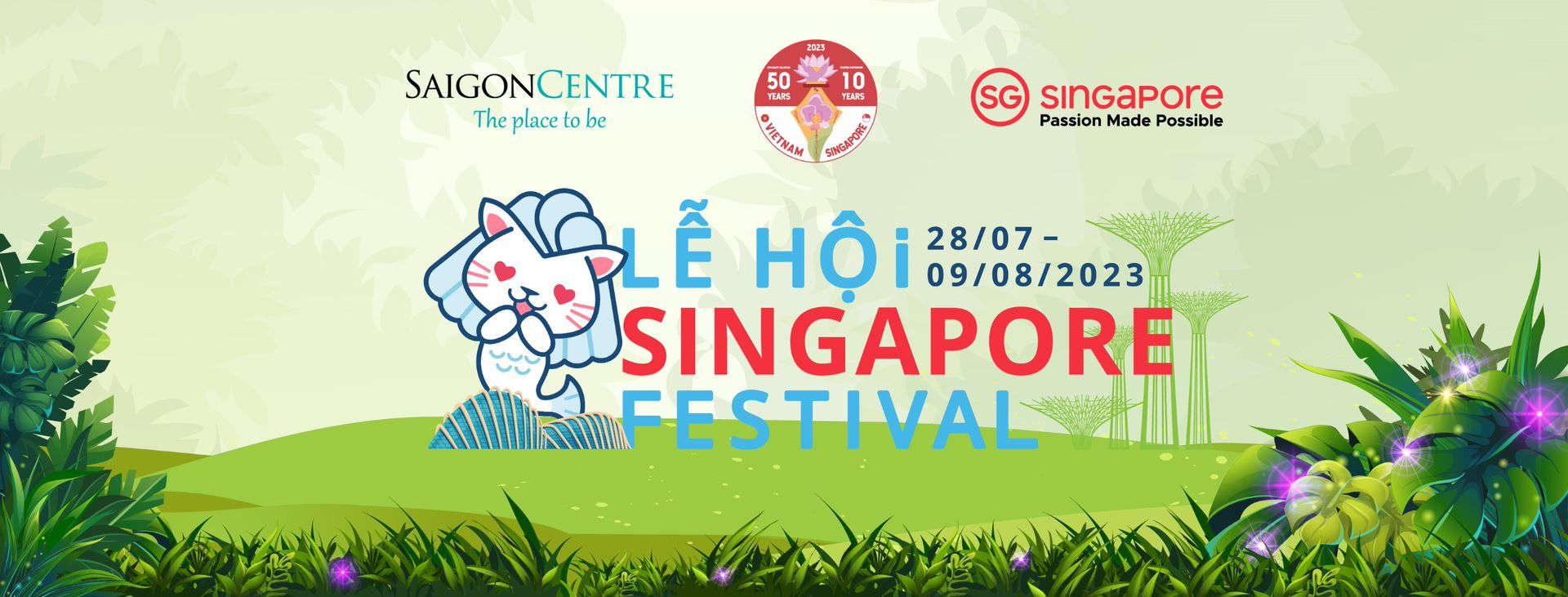 Những ngày hè cuối tháng 7, đầu tháng 8 sẽ trở nên xanh mát và dịu dàng hơn với Lễ hội Singapore (Singapore Festival) được tổ chức tại Saigon Centre từ 28/07 – 10/08/2023. Trong khoảng thời gian này, Khách hàng sẽ có cơ hội tận hưởng các chương trình khuyến mãi trên toàn trung tâm mua sắm, chụp ảnh ở những địa điểm ăn ảnh được bao quanh bởi cây xanh và các biểu tượng nổi tiếng của Singapore, đồng thời dùng thử nhiều loại sản phẩm theo chủ đề Singapore. Đến với Lễ hội Singapore là đến với một Đảo quốc Sư tử thu nhỏ ngay giữa lòng Sài thành, cùng hoà mình vào các hoạt động quảng bá văn hoá của đất nước Đông Nam Á này.