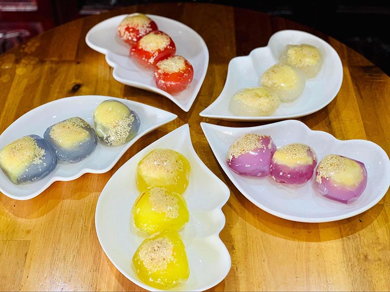 Bánh hấp dẫn mọi mắt nhìn với lớp vỏ trong suốt điểm xuyết những sợi dừa trắng tinh khôi và nhân đậu xanh vàng ươm bên trong. Vỏ bánh có màu sắc khá đa dạng từ trắng, xanh đến đỏ, vàng, tím… nhưng phổ biến nhất là màu xanh lá mướt mắt. Khi ăn, vỏ bánh giòn, dai dai hòa cùng dừa sợi giòn và nhân đậu xanh bùi ngậy, ngọt dịu, thơm mùi hương vani hấp dẫn vô cùng.